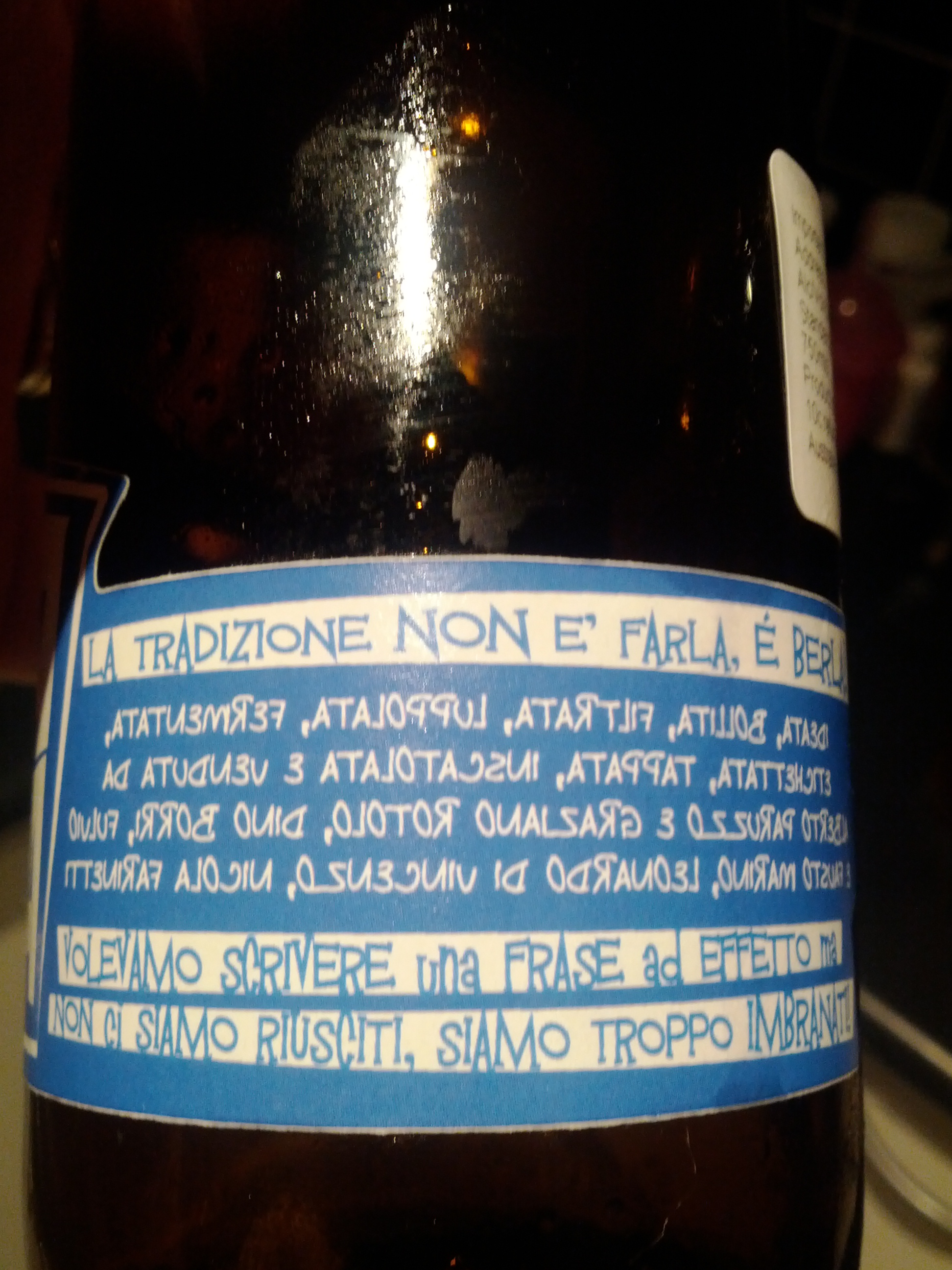 For a short while I figured I’d found another beer to rival Bitch in the awful name stages. At Thirroul Village Cellars I picked up a bottle of InBraNata from Birra del Borgo in Italy. The entire label is written in Italian – some of it backwards, which made it the first beer I’d ever bought while having no clue about what was inside the bottle.