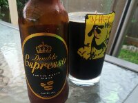 It’s a beer with a confusing label. The front label reads “Double Espresso Premio Caffe Birra” – so it’s an Italian beer, right?