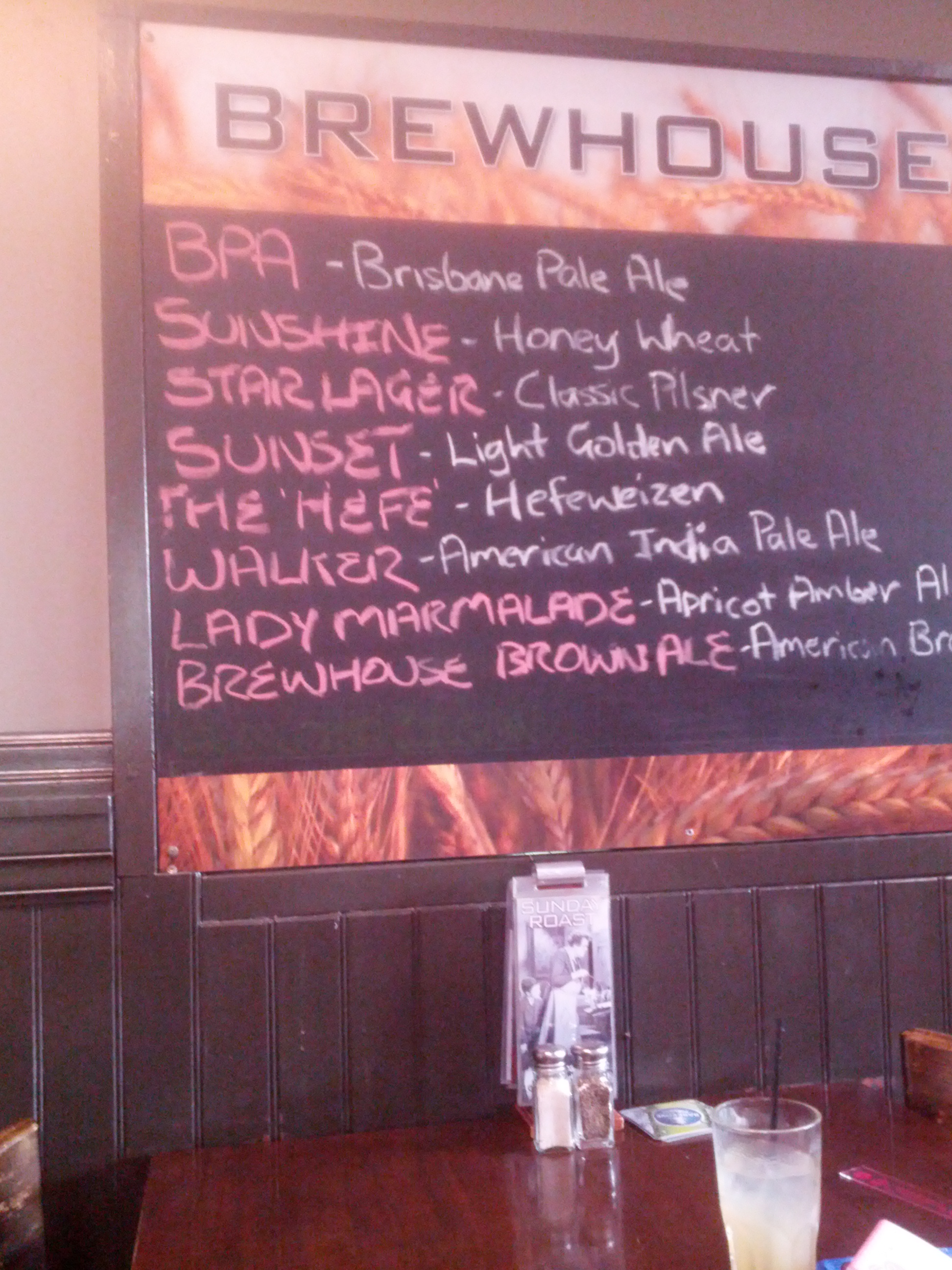 The Brisbane Brewhouse beer list – they’d run out of all but three by the time I got there.