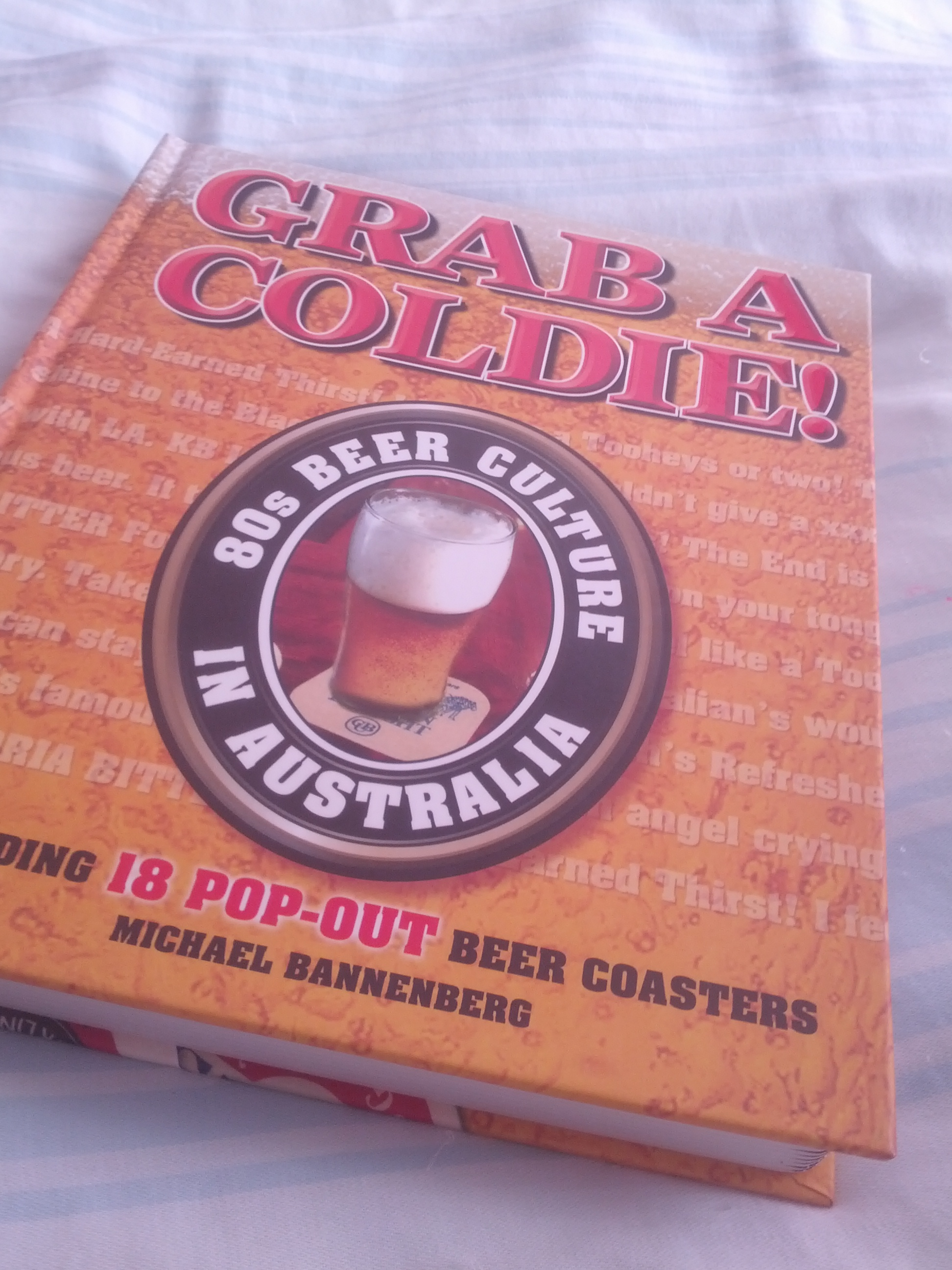 I just couldn’t justify paying $25 for a book that has just 18 pages and takes less than 10 minutes to read. Presumably a large part of the cost is due to an unusual addition – each double-page spread in the book contains two retro beer-branded coasters that you can pull out (and use, if that takes your fancy). That couldn’t have been a cheap publishing process.