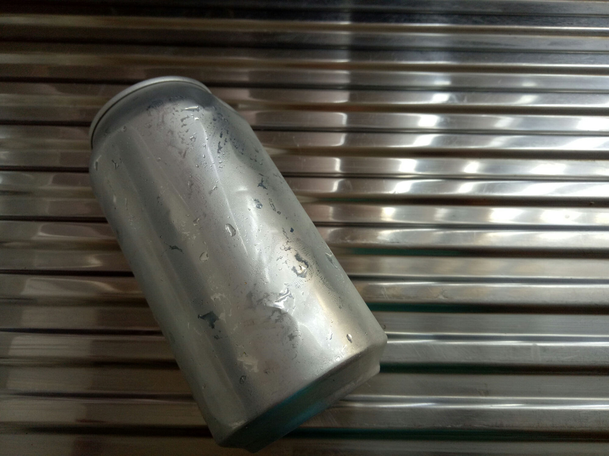 1) The can in this photo is really nothing special to look. It’s a label-less silver can, with a few dings anf dents at the top. There is seemingly no reason to get excited about anything here at all.