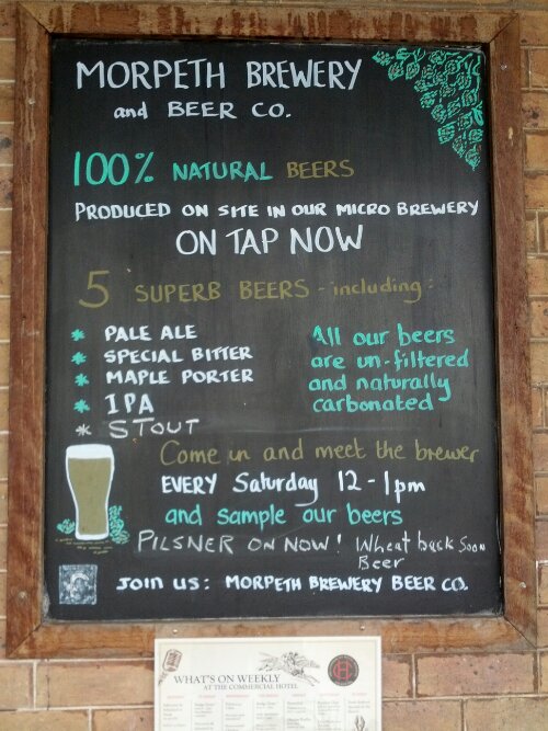 The blackboard outside the Commercial Hotel at Morpeth, which formed part of my birthday celebrations